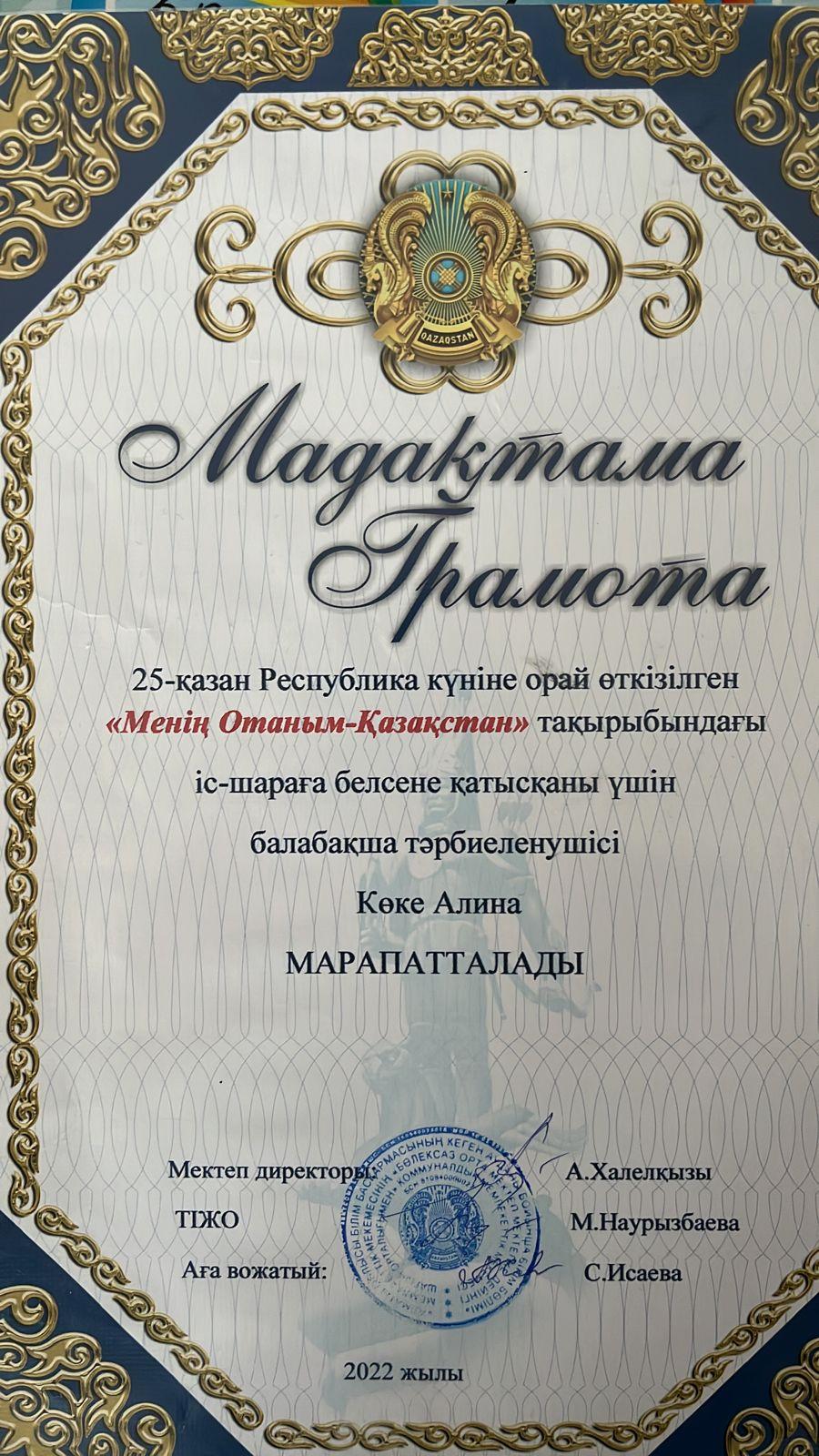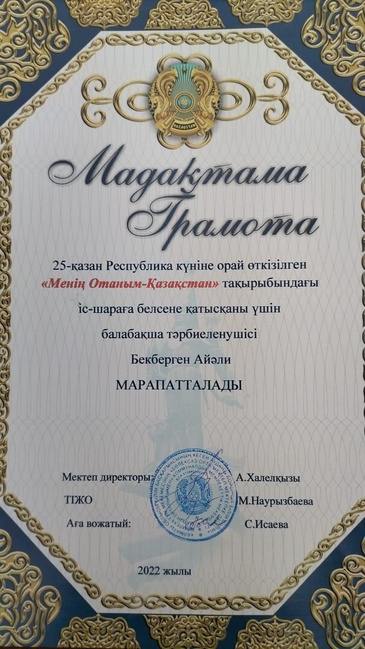 21 октябрь 2022 0 1 2 3 4 5 Көркем сөз оқудан марапаттау 25 қазан Республика күніне орай өткізілген мектепішілік мерекелік шарада көркем сөз оқудан шағын орталық тәрбиеленушілері Көке Алина мен Бекберген Айәли өнер көрсетіп,үздіктер қатарында марапатталды.
