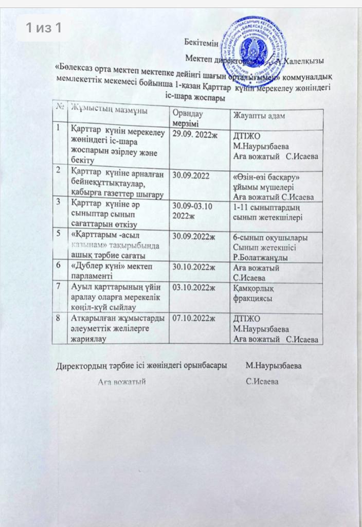 1-қазан Қарттар күнін мерекелеу жөніндегі іс-шара жоспары