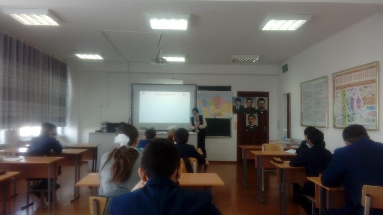 17 март 2021 0 1 2 3 4 5 Жаңашыл мұғалім болу- заман талабы Орыс тілі мен әдебиеті пәні бойынша Мукашева Толқынның Ч.Айтматовтың "Плаха" тақырыбында ашық сабағы өтті. 8-сынып оқушылары белсене, қызығушылықпен қатысып, заман талабына сай жаңашылдықпен өткен сабақ болды.